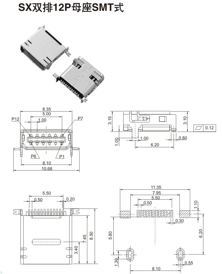 SX雙排12P母座SMT式