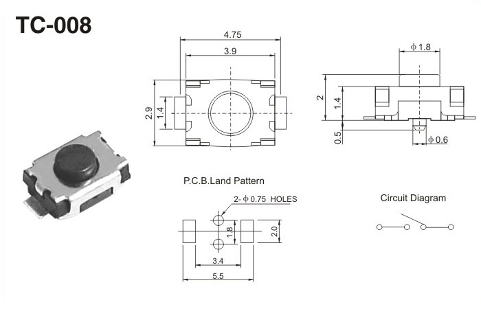 生產開關、插座、貼片開關、輕觸開關,DC電源插座等產品