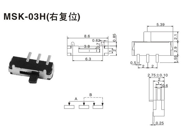 小撥動開關MSK-03N(右復位).產品廣泛應用于計算機周邊、多媒體音響、家電儀器、電子玩具、視聽設備、通訊設備等。