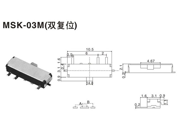 小撥動開關MSK-03M(雙復位).產品廣泛應用于計算機周邊、多媒體音響、家電儀器、電子玩具、視聽設備、通訊設備等。