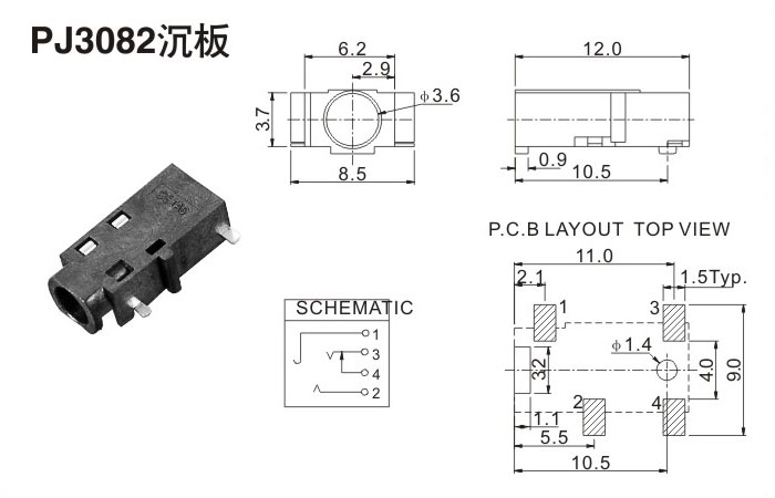 耳機插座/PJ3082沉板貼片本產品廣泛用于,玩具,電動玩具,玩具公仔,防盜器,家用電器,手機數碼,電子通訊,電子游戲機,汽車防盜,智能化系統,電視機、MP3、耳機,等電腦通訊器材